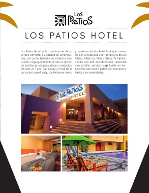 DESTINO NACIONAL des, así como también su atractiva ubi- Cabos. Hotel Los Patios ofrece 76 habita-
